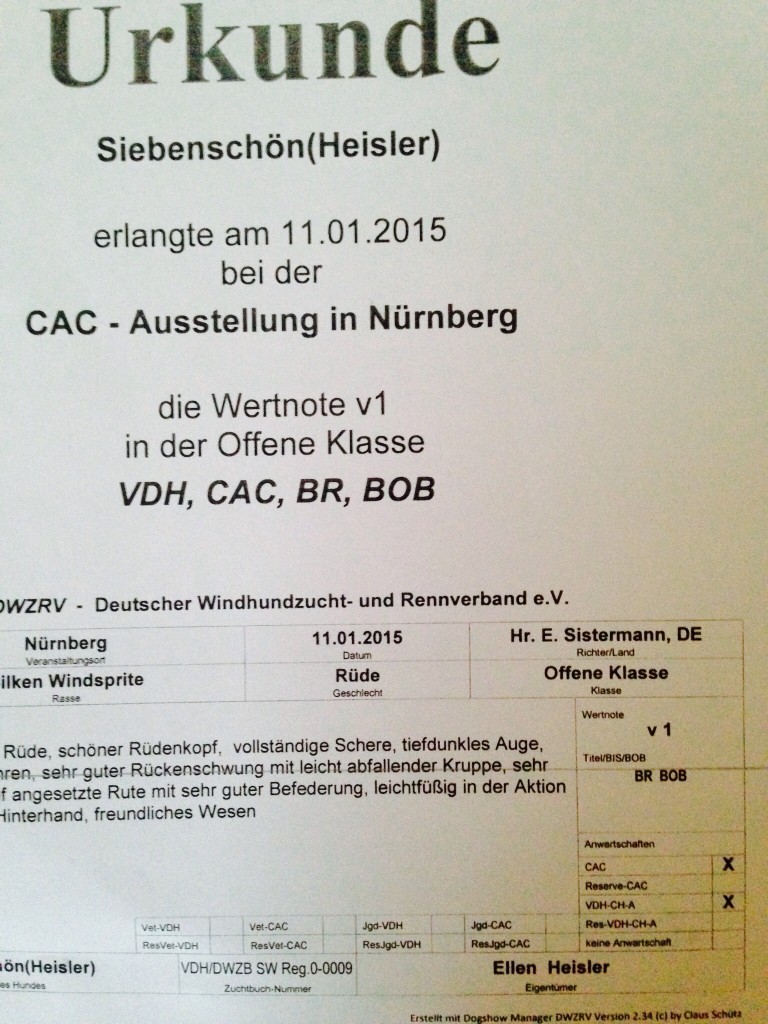 Ein wunderschöner Schwan wurde der erste Silken Windsprite, der offiziell (VDH) ausgestellt wurde und glänzte mit Bestnoten!