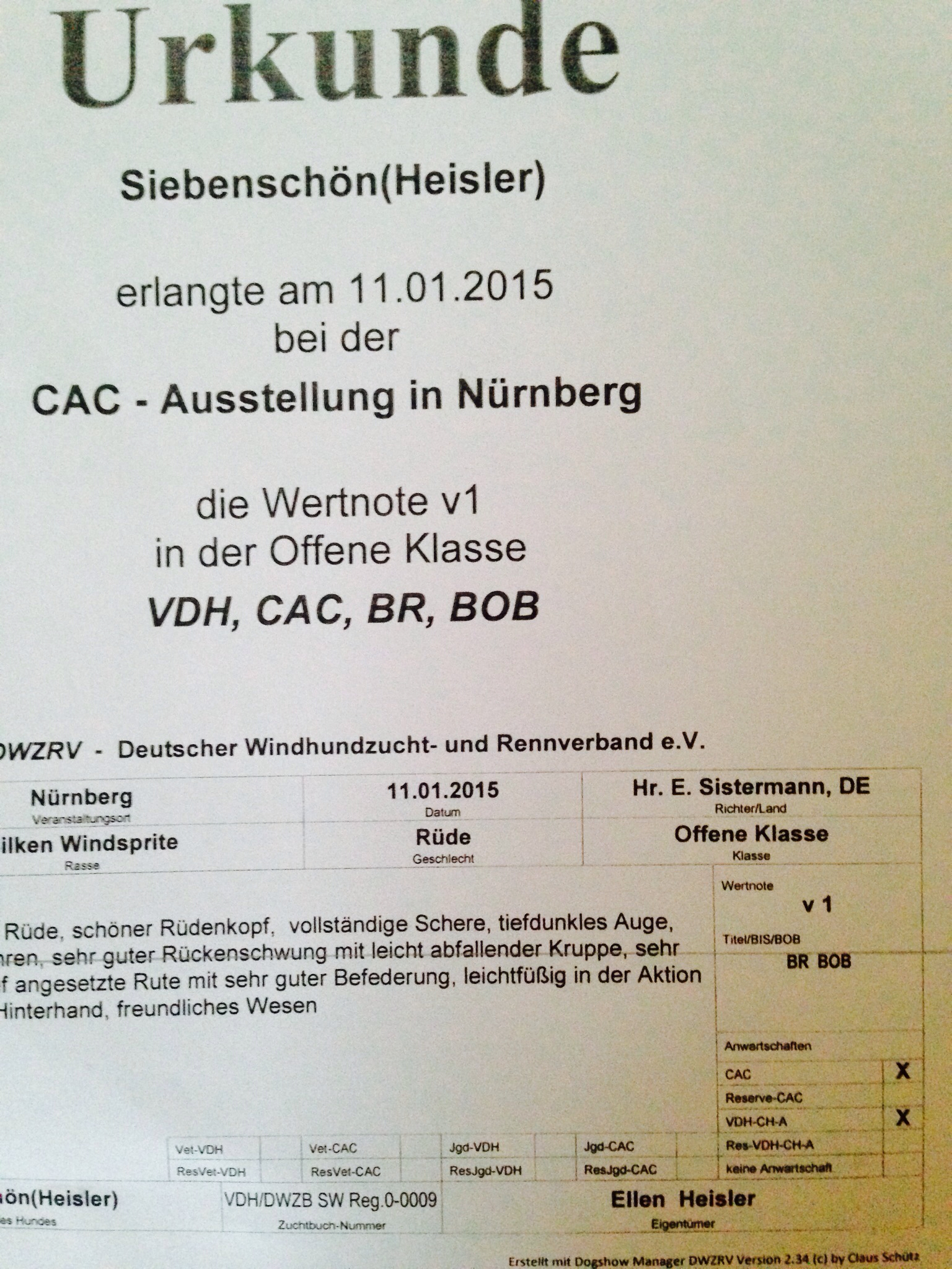 Vielen Dank liebe Ellen, dass Du unseren schönen A Schwan Nico (Siebenschön) auf der CACIB in Nürnberg gezeigt hast. Ich bin sehr stolz auf Euch!